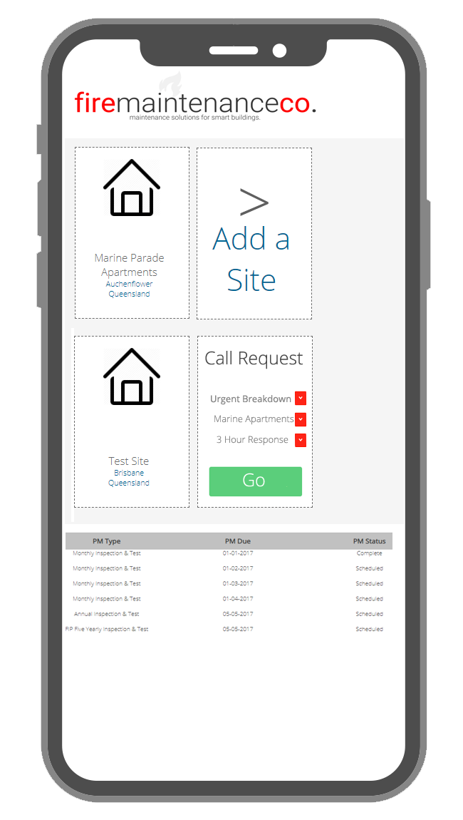 Request a technician, book a repair, view planned maintenance and download compliance reports.